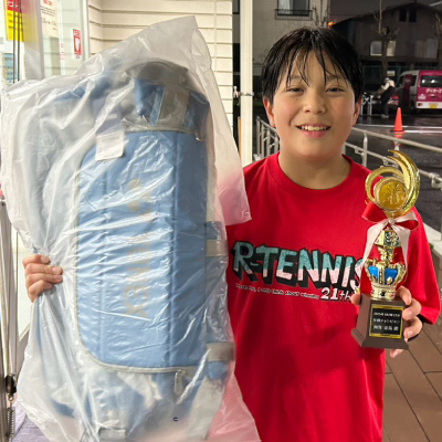 2025年、年間チャンピオンは河野春馬くんに決定しました!年間を通して安定した成績を収め年間チャンピオンとなりました!チャンピオンに輝いた春馬くんにはトロフィーと副賞のバッグとガット張無料券5枚が贈られました。2026年は公認大会での優勝を目指して頑張りましょう!